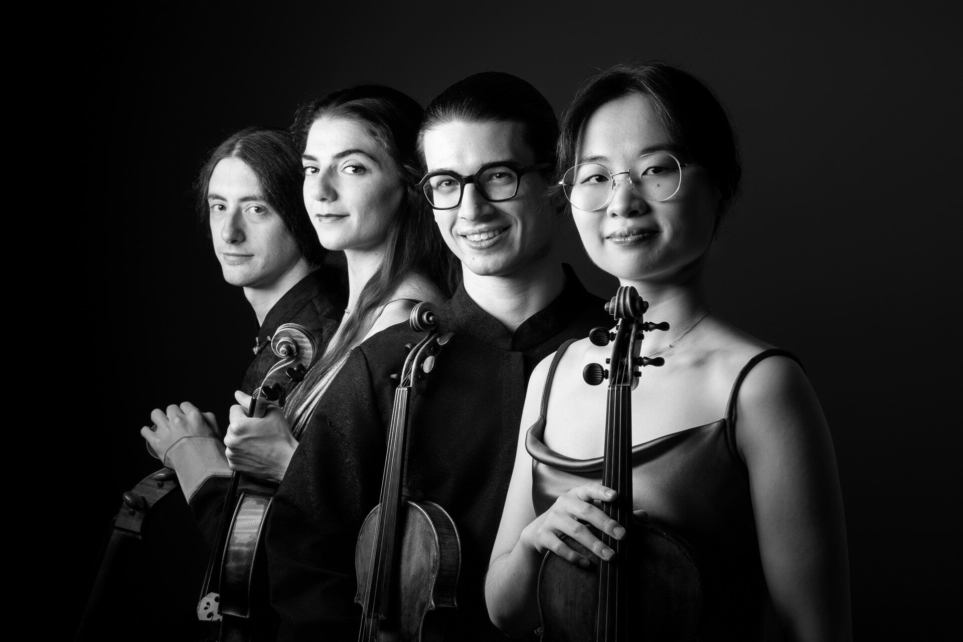 Winner of the 42nd Premio Abbiati of the Italian Music Critics’ Association, the Quartetto Goldberg has quickly established itself on the international chamber music scene. The ensemble is currently Artist in Residence between Brussels, Madrid, and Cremona, working closely with the Queen Elisabeth Music Chapel, the Escuela Superior de Música Reina Sofía, and the Accademia Stauffer. Since its founding in 2021, the quartet has toured in over 15 countries across Europe, Asia, and the Middle East.